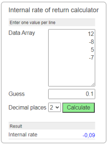 IRR returns a value specifying the internal rate of return for a series of periodic cash flows (payments and receipts).